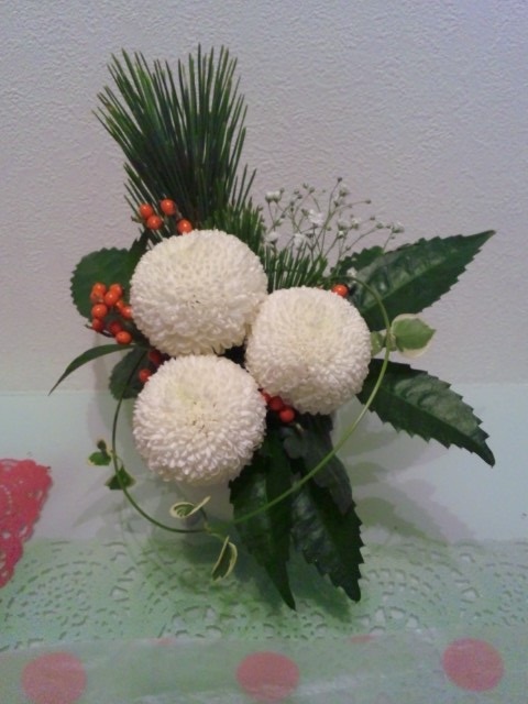 先日の友人の結婚式で、このこんもりした菊が可愛いなぁ~